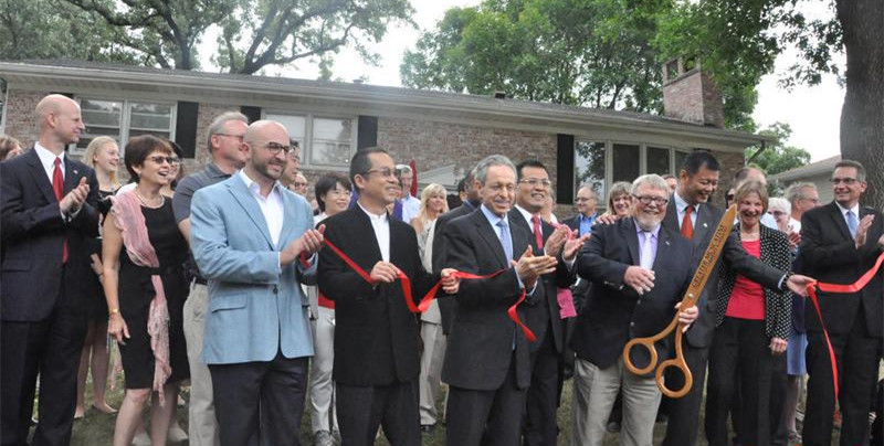 习近平主席访美前夕,马斯卡廷市长霍普金斯宣布,将这个习近平曾经居住的地方设立为纪念馆,命名为中美友谊屋,免费向公众开放。 市长、总领事、社区居民代表以及当年房东的儿子盖伊·德沃切克共同托起红丝带,用一把超大的木剪刀,为友谊屋的开放剪彩,大家欢呼鼓掌。 1985年5月,时任河北正定县委书记习近平率石玉米深加工考察团访问爱荷华,短暂借宿于马斯卡廷的普通家庭中。 盖伊站在他当年的卧室里介绍说,他和哥哥都在念大学,只有父母和妹妹在家,家里有空地方,所以就被安排接待了习主席。“屋里的家具、陈设没有改变,厨房、客厅还是老样子。”盖伊说,“只是,你们可以看到,我的房间很小,但当时习主席是和翻译两个人一起住在这间屋里的。我后来得知后还很惊讶,其实地下室还有我哥哥的睡房可以住”。 当地的华人企业中国之窗创始人王骏介绍说,以前他们都是从报纸和电视上了解中国的,有很多误解和偏见。由于习主席的来访,这里的居民接触了中国,了解更多,对中国有一份特殊的感情。 专程赶来的中国驻芝加哥总领事赵卫平说,这是全美国第一个以中美友谊为主题的纪念馆,反映了美国民间对习近平主席、对中国人民的友好感情。 |